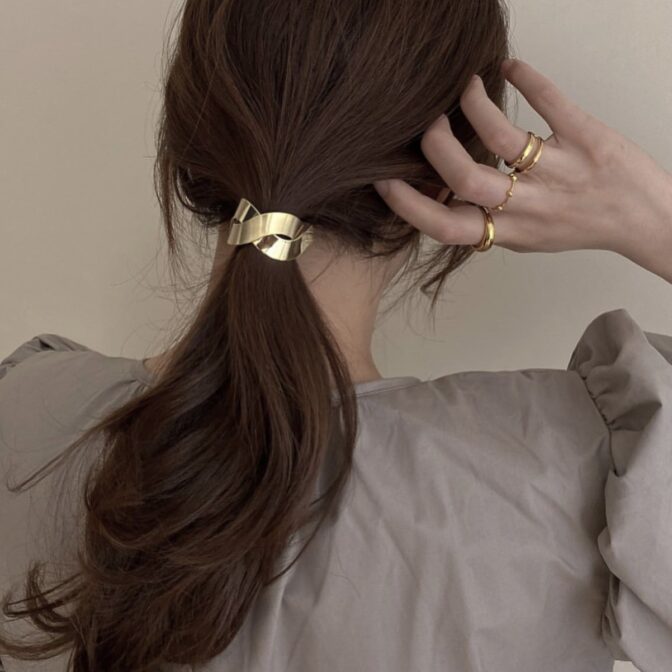 シルバー&ゴールド セット メタル プレート ヘアゴム ヘアアクセ 韓国