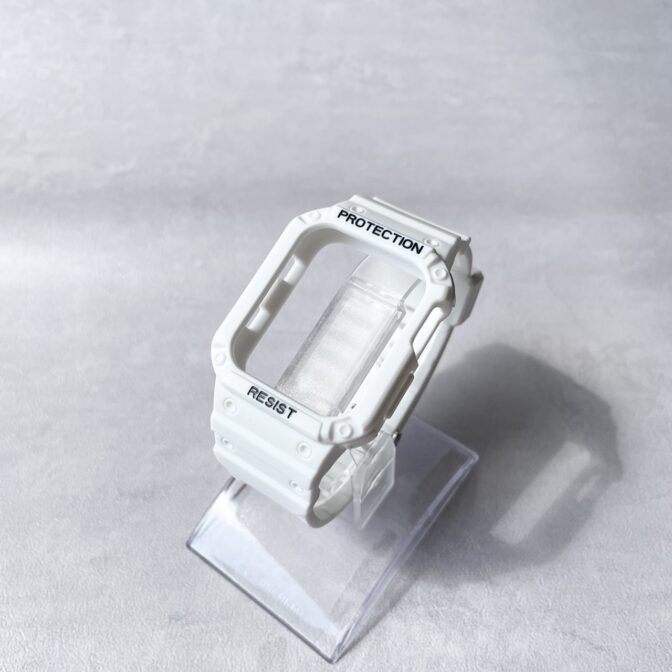 フレーム一体型のプラスチック製アップルウォッチバンドです。