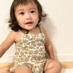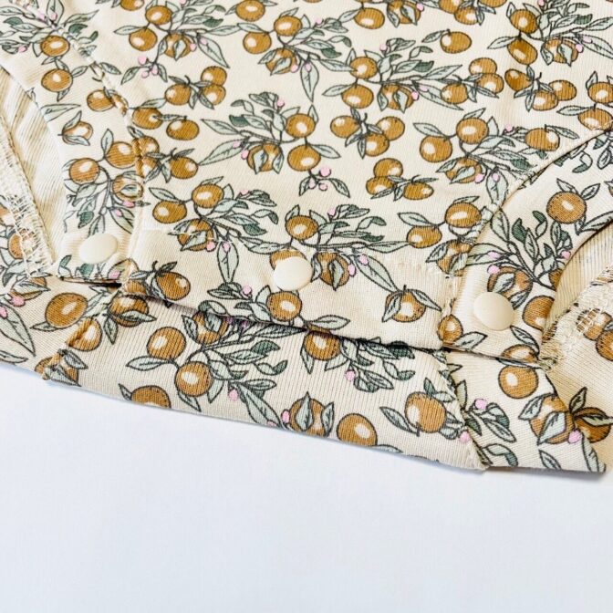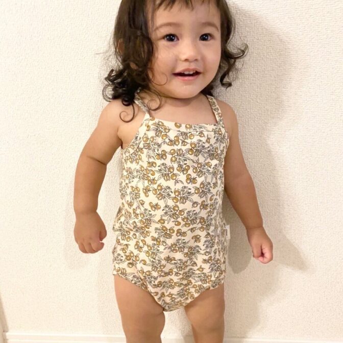 オレンジ模様がとても可愛いサロペットロンパースです。